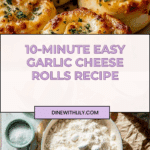 These 10-Minute Easy Garlic Cheese Rolls are soft, buttery rolls filled with a flavorful garlic cheese mixture, perfect as a quick snack or a delicious side for any meal. Soft yeast dough is rolled with a savory blend of mozzarella, sharp cheddar, Parmesan, fresh garlic, and herbs, then baked to golden perfection.