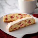 - If you prefer, drizzle the melted white chocolate over the biscotti instead of dipping them for a lighter coating.
