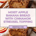 Keywords: apple banana bread, quick bread, moist banana bread, cinnamon streusel, fall baking, overripe bananas, sweet bread, easy baking, cake-like bread
