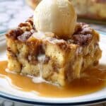 - Serve: Once baked, pour the warm caramel sauce over the bread pudding just before serving. For an extra indulgent touch, serve with vanilla ice cream on top.