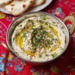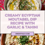 Authentic Egyptian Moutabel is a creamy, smoky eggplant dip flavored with garlic, tahini, lemon, and spices, blended with Greek yogurt for a rich texture. Perfect as a flavorful appetizer or side dish served with warm pita bread.