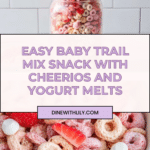 A simple and nutritious Baby Trail Mix perfect for toddlers and little ones. This mix combines crunchy Very Berry Cheerios, sweet yogurt melts, freeze-dried strawberries, and baby puffs for a balanced snack that is both tasty and easy to serve on-the-go.