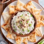 A rich and creamy bacon and cream cheese dip made with sharp cheddar, scallions, and crunchy roasted pecans. Perfect for parties and gatherings, this flavorful dip combines tangy sour cream and mayonnaise with smoky bacon bits and nutty pecans for a deliciously indulgent appetizer.