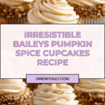 Keywords: Baileys Pumpkin Spice Cupcakes, pumpkin cupcakes, fall desserts, autumn cupcakes, Baileys frosting, spiced pumpkin cake