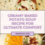 Keywords: baked potato soup, creamy potato soup, comfort food, bacon potato soup, easy soup recipe, russet potatoes, cheddar cheese soup