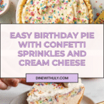 Keywords: birthday pie, no bake pie, cream cheese pie, marshmallow fluff dessert, vanilla pudding pie, whipped topping pie, festive dessert, easy party dessert