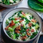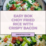 Keywords: bok choy fried rice, bacon fried rice, easy fried rice recipe, Asian fried rice, quick dinner, smoky bacon recipe
