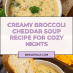 Keywords: Broccoli soup, cheddar cheese soup, creamy broccoli soup, comfort food, vegetable soup, homemade soup