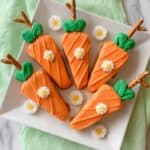 - If you prefer, substitute pretzels with green licorice strips for a different texture on the carrot tops.
