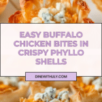 These Buffalo Chicken Appetizers, also known as Buffalo Chicken Bites, are a delicious and spicy party snack featuring shredded chicken mixed with cream cheese, cheddar, and buffalo sauce, all baked inside crispy phyllo shells and topped with tangy blue cheese crumbles. Perfect for game day or casual gatherings, they’re easy to prepare and offer a perfect balance of creamy, spicy, and cheesy flavors.