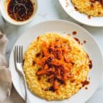 Keywords: Carrot Risotto, Chile Crisp, Italian Risotto, Vegetarian Risotto, Comfort Food, Roasted Carrots, Arborio Rice