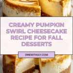 This Cheesecake with Pumpkin Swirl is an elegant, autumn-inspired dessert that combines the creamy richness of classic cheesecake with the warm, spicy flavors of pumpkin. Featuring a beautifully marbled swirl design, it’s perfect for Thanksgiving, holiday dinners, or any special occasion dessert that elevates your meal to memorable heights.