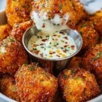 These Cheesy Jalapeño Ranch Chicken Poppers are crispy, flavorful bite-sized snacks perfect for parties or a tasty appetizer. Filled with shredded chicken, sharp cheddar, fresh jalapeños, and ranch seasoning, then deep-fried to golden perfection, they are served with a creamy ranch dip with a hint of lemon and herbs for an irresistible combination.
