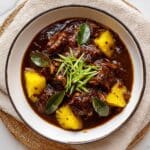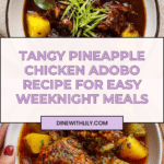 This Chicken Adobo with Pineapple recipe beautifully combines the traditional Filipino adobo flavors with a sweet and tangy twist from pineapple. Tender chicken thighs are marinated in a flavorful mixture of pineapple juice, soy sauce, and vinegar, then seared and simmered to perfection with aromatic spices and pineapple chunks. Served hot with steamed rice and garnished with fresh spring onions, this dish offers a delightful balance of savory, sweet, and tangy tastes that will satisfy any palate.