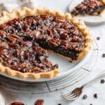 Keywords: Chocolate Bourbon Pecan Pie, holiday pie, pecan pie with chocolate, bourbon pecan pie, homemade pecan pie crust, classic pecan pie, festive desserts