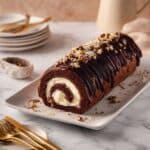 Decadent, elegant, and surprisingly approachable—this Chocolate Bourbon Pecan Swiss Roll is a dessert worth celebrating. The light, cocoa-rich sponge pairs perfectly with bourbon-soaked cream cheese filling, topped with glossy chocolate ganache and bourbon caramel sauce for an irresistible treat.