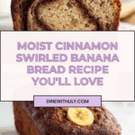 Keywords: banana bread, cinnamon swirl, cinnamon sugar, baked banana bread, moist banana bread, breakfast bread, homemade banana bread, sweet bread