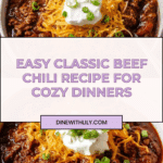 Classic beef chili is a comforting dish perfect for casual dinners with family or friends. Packed with rich flavors and hearty ingredients, it’s simple to make and even better the next day. Serve it with your favorite toppings for a satisfying meal that everyone will love.