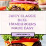 This Classic Beef Hamburger recipe delivers juicy, perfectly seasoned beef patties grilled or pan-fried to your preference and topped with fresh lettuce, tomato, onion, pickles, and your choice of condiments. Served on toasted buns with optional cheese, this timeless burger is ideal for a quick, satisfying meal that’s easy to customize and perfect for any casual gathering.