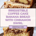 Keywords: coffee cake banana bread, banana bread, streusel topping, cinnamon swirl, breakfast bread, brunch recipe, moist banana bread, cinnamon banana bread