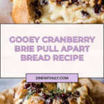 Keywords: cranberry brie pull apart bread, holiday appetizer, sourdough bread recipe, stuffed bread, melted brie, festive appetizer
