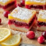 Cranberry Lemon Bars combine the tartness of fresh cranberries with bright, zesty lemon for a perfect holiday treat. With a buttery shortbread crust and a luscious lemon custard topping, these bars offer a refreshing burst of flavor that’s both sweet and tangy.