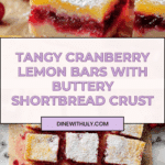 Keywords: cranberry lemon bars, lemon bars, cranberry bars, holiday dessert, tart cranberry dessert, shortbread crust, lemon custard, Christmas dessert, Thanksgiving dessert