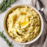 - Finish with Rosemary: Stir in the fresh chopped rosemary for a fragrant herbaceous finish. Transfer the mashed potatoes to a serving dish and serve warm.
