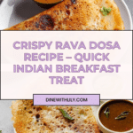 Rava Dosa is a delicious, crispy South Indian crepe made from semolina and rice flour. It’s quick to prepare and does not require fermentation, making it perfect for a tasty breakfast or snack. Enjoy its unique texture with flavorful chutneys and sambar.