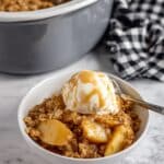 - Cool and Serve: After cooking, turn the slow cooker to the warming setting, remove the lid, and allow the apple crisp to cool for about 30 minutes. Serve warm and enjoy this comforting dessert.