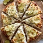 - Add toppings: Spread the prepared garlic sauce evenly across the surface of the dough. Arrange dill pickle slices evenly on top of the sauce. Sprinkle the shredded mozzarella cheese over the pickles for a delicious, melted finish.