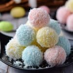 - Coat with Colored Coconut: Roll each ball in the colored fine-shredded coconut, ensuring they are fully coated with the pastel coconut for a festive appearance.