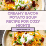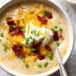 Keywords: baked potato soup, creamy potato soup, bacon potato soup, easy potato soup, comfort food, stovetop soup, cheddar cheese soup