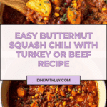 Keywords: Butternut Squash Chili, Ground Turkey Chili, Beef Chili, Healthy Chili, Easy Chili Recipe, Fall Recipes, Comfort Food
