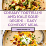 - Step 3: About 10 minutes before serving, stir in kale, cream, parmesan, and tortellini. Cook until kale wilts and tortellini is tender.