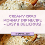 This Easy Creamy Crab Mornay Dip is a luxurious and flavorful appetizer featuring tender crab meat in a rich, cheesy sauce made with Swiss cheese, butter, and half and half. It’s perfect for entertaining or casual gatherings, served warm with a garnish of fresh parsley or scallions. For a more substantial meal, try filling puff pastry shells with this delicious dip.
