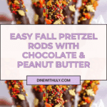 Keywords: fall pretzel rods, easy pretzel recipe, chocolate pretzel rods, fall treats, peanut butter pretzel rods, no-bake dessert, Halloween snacks, Thanksgiving treats