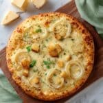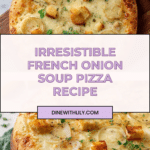 A delicious fusion recipe that transforms a classic cheese pizza into a French Onion Soup-inspired masterpiece by topping it with caramelized onions, melted Gruyère cheese, savory croutons, and fresh thyme for garnish. Perfect for pizza lovers seeking a gourmet twist.