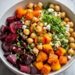 This fresh chickpea, beet, and feta salad is a vibrant and nutritious dish that’s perfect for a light lunch or a colorful side. The combination of roasted beets, creamy feta, and tangy dressing offers a delightful balance of flavors and textures. It’s easy to prepare and sure to impress.