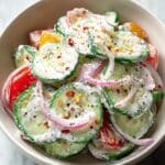 This Fresh Everything Bagel Cucumber Salad is a creamy, flavorful side that’s perfect for warm days or as a refreshing snack. Crisp cucumbers are coated in a tangy dressing enriched with everything bagel seasoning for a delightful twist.