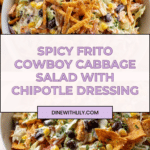 Frito Cowboy Cabbage is a vibrant, crunchy salad featuring a delightful mix of coleslaw mix, black beans, corn, jalapeño, and bell peppers, all tossed in a creamy chipotle dressing. Topped with Chili Cheese Fritos, this easy-to-make southwestern-inspired salad is perfect for a quick meal or a flavorful side dish.