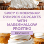 Keywords: Gingersnap, Pumpkin Cupcakes, Marshmallow Frosting, Italian Meringue, Fall Dessert, Spicy Cookie Crust