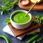 Keywords: green chutney, mint chutney, coriander chutney, Indian condiment, spicy dip, herb chutney, fresh chutney, vegan chutney