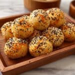 These High-Protein Bagel Bites are a delicious and nutritious snack featuring gluten-free flour, Greek yogurt, and protein powder. Perfectly bite-sized and topped with Everything But The Bagel seasoning, they are air-fried to golden perfection, providing a crispy exterior with a creamy cream cheese center. Ideal for a quick, protein-packed treat that’s gluten-free and satisfying.
