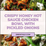 Keywords: Honey chicken bowl, fried chicken, hot honey sauce, pickled red onions, crispy chicken, spicy chicken bowl