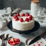 This Japanese Strawberry Cake is a delicate and light sponge cake layered with macerated strawberries and whipped cream. Featuring a moist, fluffy base baked in a water bath for tenderness, it is elegantly frosted with either stabilized or regular whipped cream and topped with fresh strawberries, making it a perfect dessert for special occasions or an elegant afternoon treat.