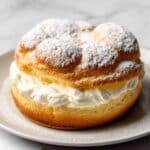 Karpatka is a traditional Polish dessert featuring layers of light, airy choux pastry filled with a luscious vanilla crème mousseline. The recipe involves baking two choux pastry layers that resemble the Carpathian Mountains, filled with a smooth custard made from crème pâtissière enriched with butter. Finished with a dusting of powdered sugar, this cake offers a delightful combination of creamy texture and tender pastry perfect for an elegant yet comforting treat.