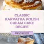 Karpatka is a classic Polish dessert featuring layers of light, airy choux pastry filled with rich, creamy custard. Its rustic peaks resemble the Carpathian Mountains, making it as visually striking as it is delicious. Perfect for special occasions or a delightful treat.