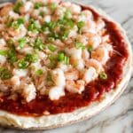 - Step 4: Sprinkle the chopped shrimp evenly over the cocktail sauce layer and garnish with chopped green onion tops.