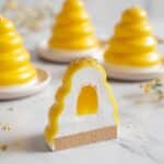 - Prepare Lemon Curd: In a small pot, combine lemon juice, sugar, whole egg, and egg yolk. Whisk gently while heating over low to medium heat until the mixture thickens and reaches a temperature of 80-85ºC. Remove from heat and strain through a sieve to remove any cooked egg bits. Let cool for 2 minutes, then add cold cubed butter and blend with an immersion blender until smooth. Transfer to a piping bag, seal airtight, and refrigerate until fully chilled.